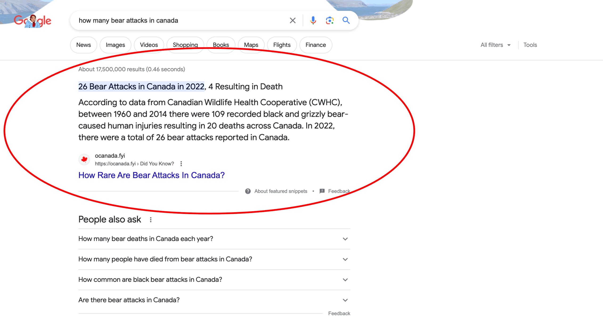It was about the number of bear attacks in Canada. Checking GSC, I saw that the post was ranked near the top. So I searched with the keywords in Google to see if I could find the post. The results were shocking.