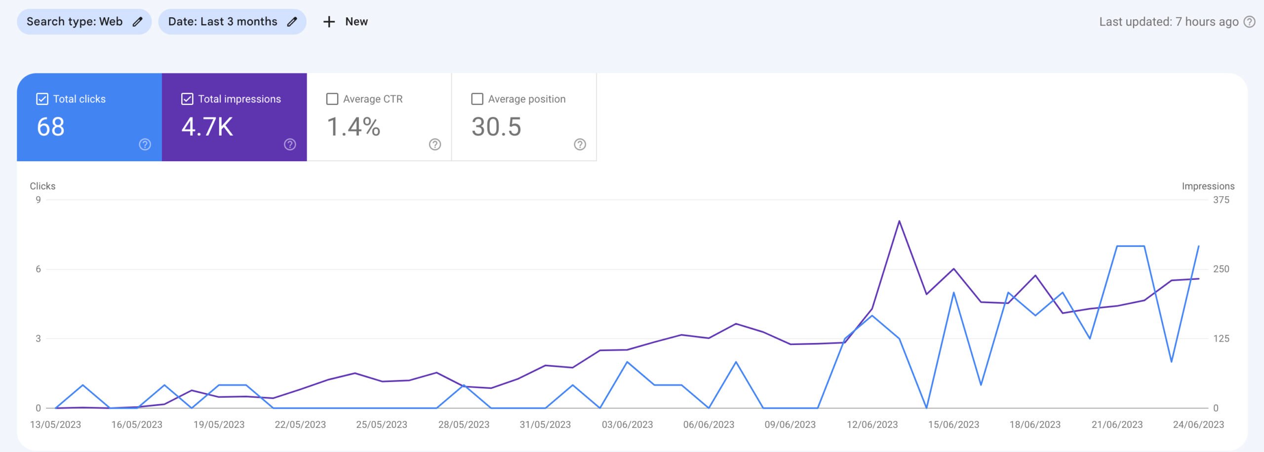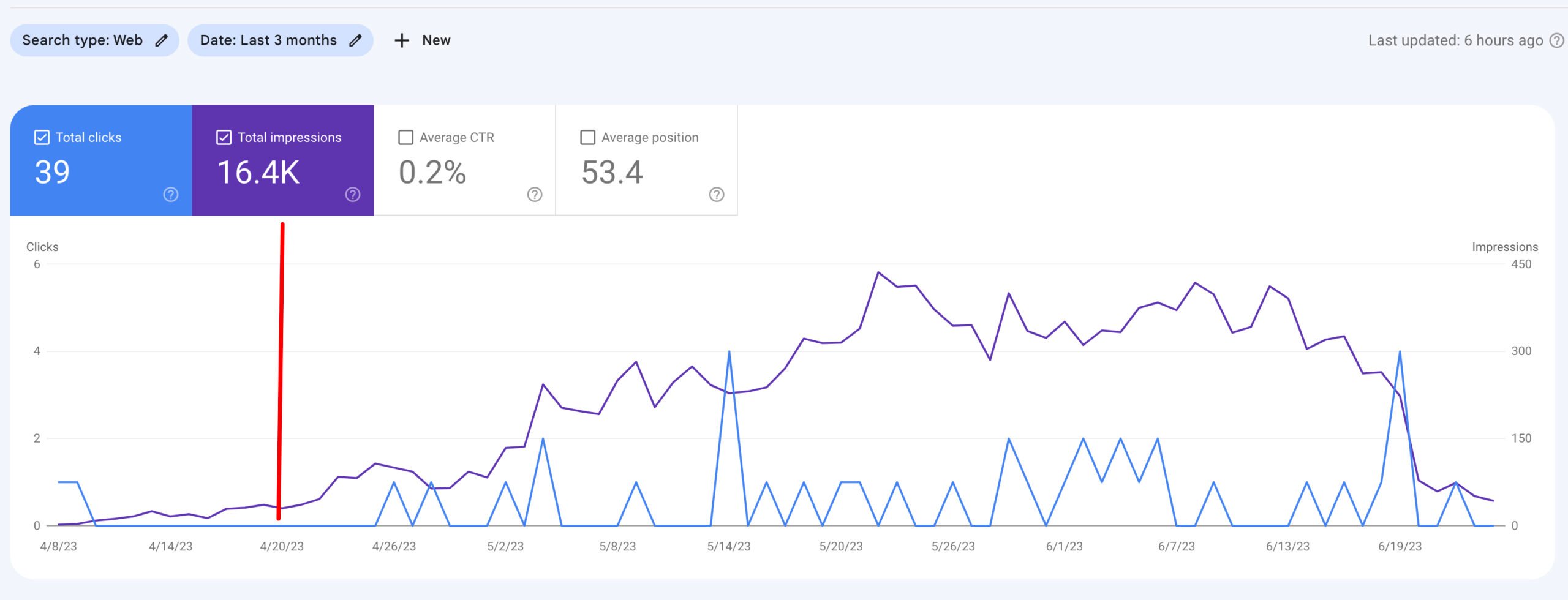 I stopped publishing content on May 31st and it wasn’t long before impressions essentially plateaued.