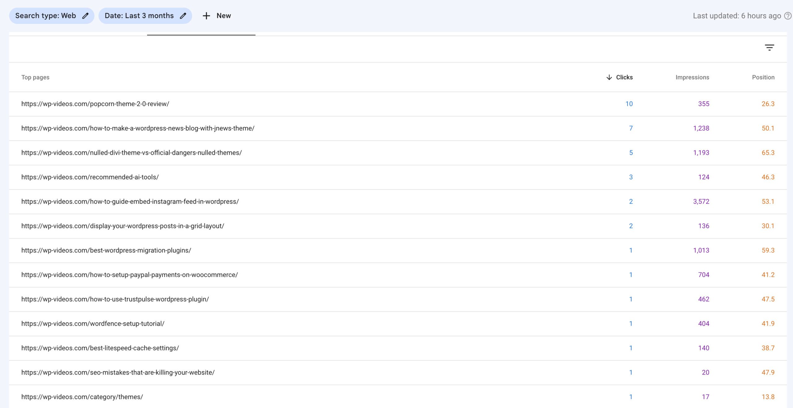 This one was slow to index out the door, I didn’t wait a couple of weeks this time before I started adding AI content like the video embed blog. The number of keywords getting search impressions was much lower, but it was getting a few clicks every day and the average keyword position was much higher.