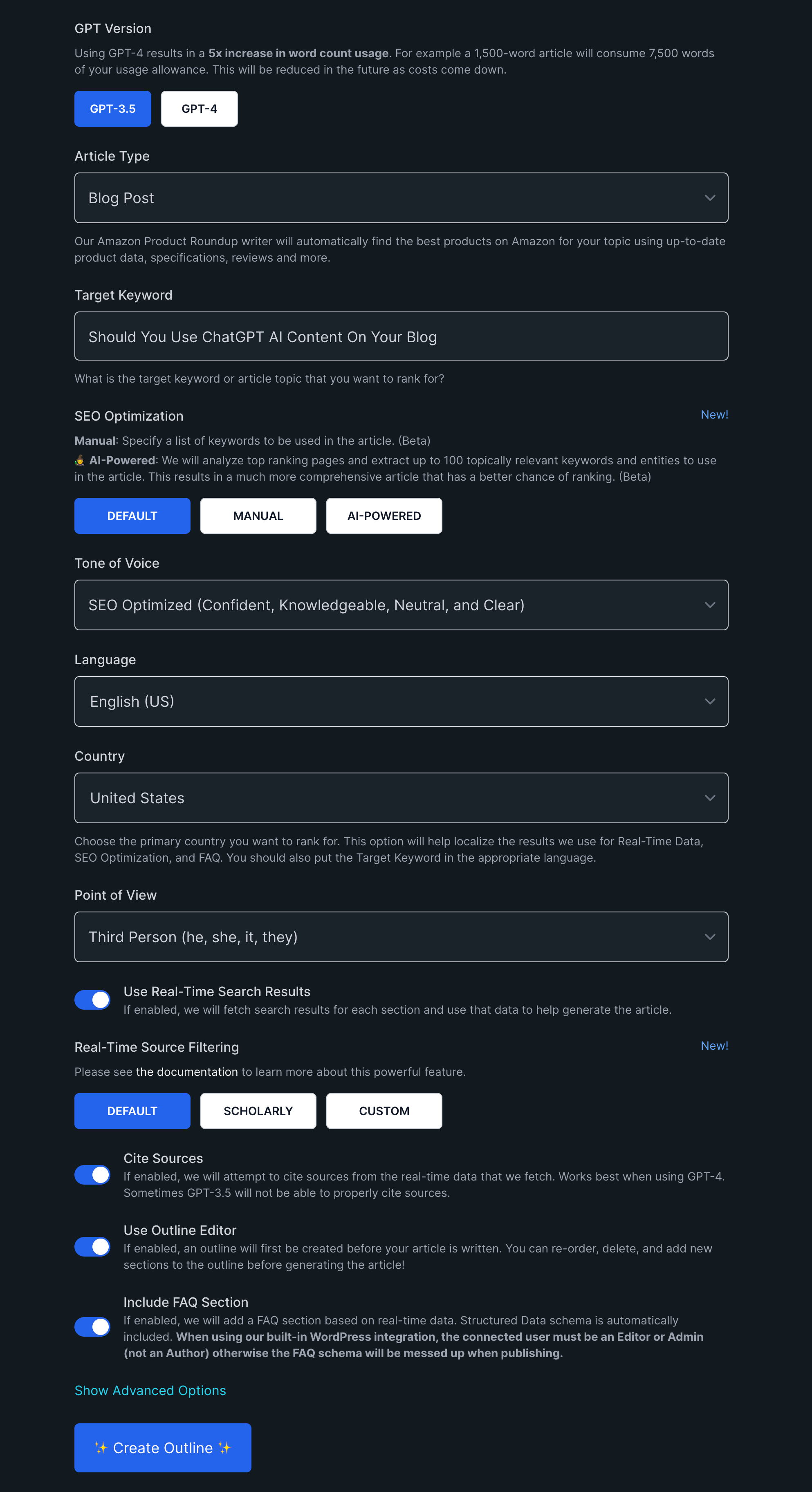 After spending a couple of hundred bucks testing multiple AI writing tools, I eventually went with a premium AI writer that goes well beyond just ChatGPT. It has 50+ SERP data points and NLP algorithms to optimize content even further. I’ll get into that a little more later here as all of these different tools have strengths and weaknesses.